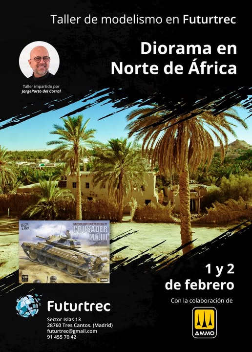 El al 1 y 2 de febrero realizaremos un diorama ambientado en el Norte de África durante la II Guerra Mundial. ¡Ojo!!! si no puedes también te proponemos otra fecha: 15 y 16 de febrero. El maestro: Jorge Porto del Corral.