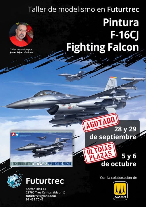 El finde del 28 y 29 de septiembre y el fin de semana del 5 y 6 de octubre, realizaremos un taller PRESENCIAL de PINTURA del F16C a escala 1/48 de Tamiya. ¡QUEDAN POCAS PLAZAS!