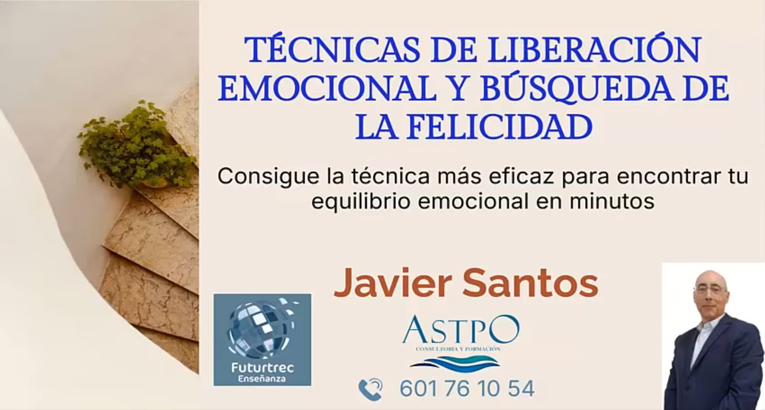 El sábado 18 de enero el formador y psicoterapeuta Javier Santos impartirá en #futurtrec un práctico taller sobre 'Técnicas de liberación emocional y la búsqueda de la felicidad'.