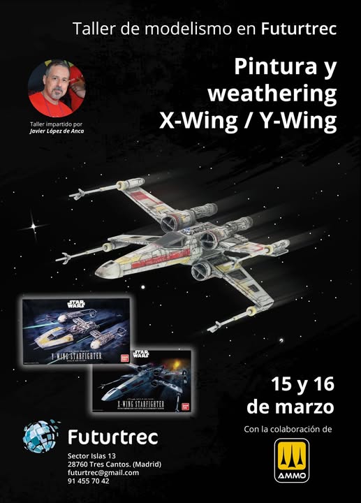 El 15 y 16 de marzo realizaremos un taller de Pintura y 'Weathering' de una famosa nave de #StarWars Podéis elegir entre un X-Wing o un Y-Wing. ¡Animaros a venir y qué la fuerza os acompañe!!!!
